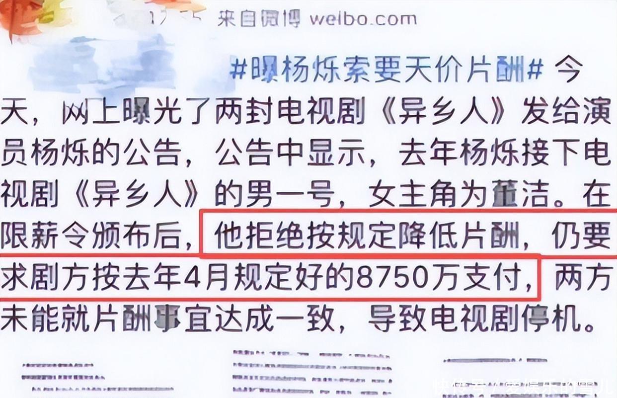 那会儿为了整顿演艺圈的“天价片酬”,明确规定了各类型演员必须按照一定比例拿到薪水。这规定一落实,大家都乖乖收敛了,没人愿意当那个“风头”多的人,可偏偏杨老师不这么想,新剧的片酬要上涨到八千多万。